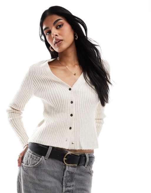 Mango - Gilet boutonné en fine maille côtelée - Beige