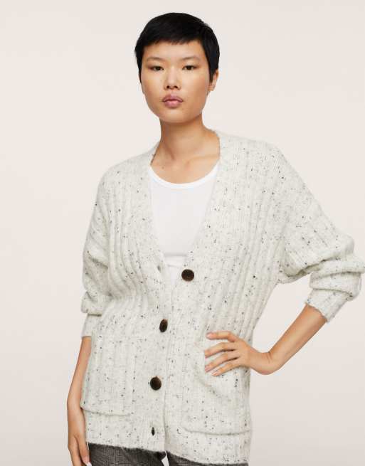 Mango - Gilet boutonné sur le devant en maille torsadée - Gris chiné
