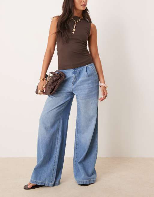 Mango - Jean droit fluide avec plis sur l'avant - Bleu clair