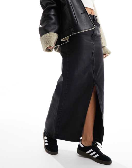 Mango - Jupe longue en jean - Noir