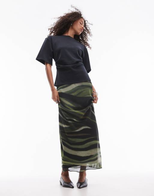 Mango - Jupe longue en tulle à imprimé varié - Vert