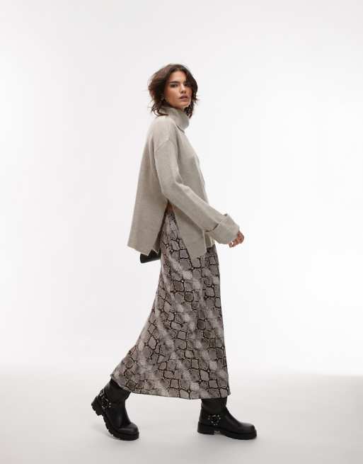 Mango - Jupe mi-longue à imprimé serpent - Gris