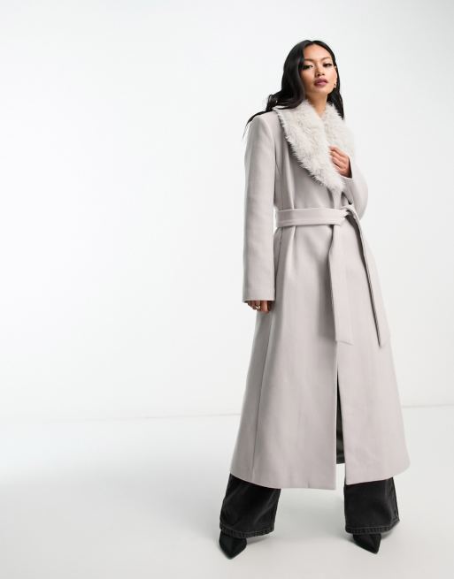 Mango - Manteau ajusté bordé de fausse fourrure - Gris