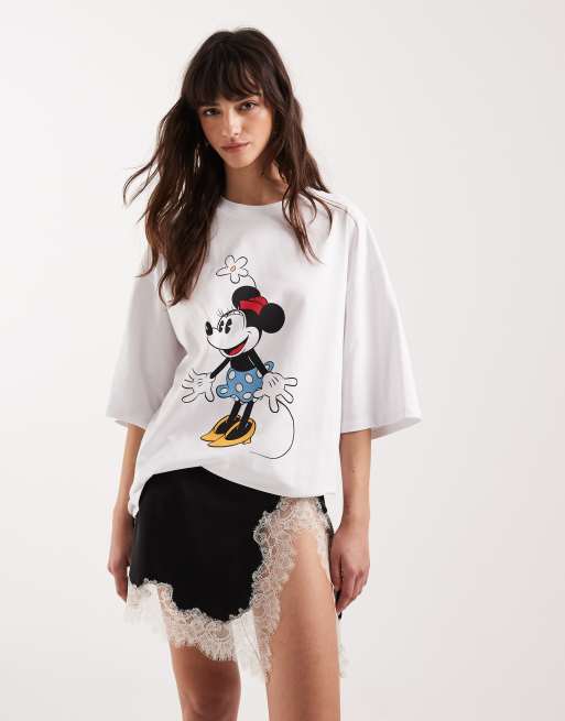 Mango - Mini-jupe en satin avec bordure en dentelle - Noir et blanc