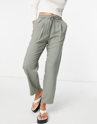 Mango - Pantalon à taille élastiquée - Vert d'eau