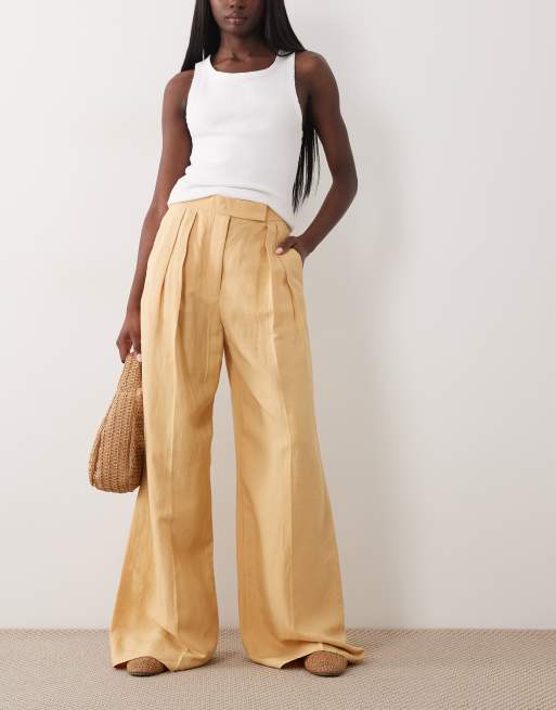 Mango - Pantalon ajusté en lin mélangé - Jaune