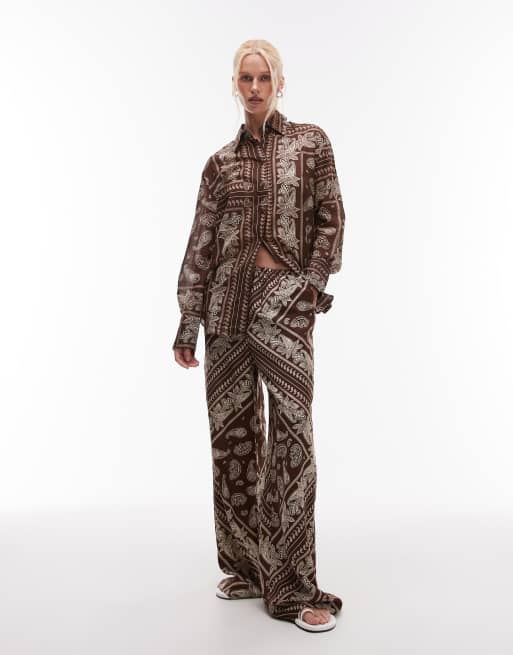 Mango - Pantalon d'ensemble à taille élastique imprimé bandana - Marron