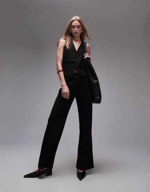 Mango - Pantalon droit d'ensemble ajusté à taille élastique - Noir