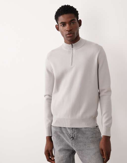 Mango - Pull de sport à col zippé - Gris taupe