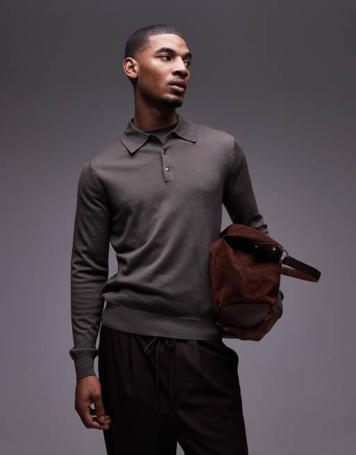 Mango - Pull en maille avec col polo boutonné - Marron clair