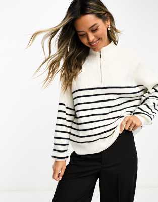 Mango - Pull rayé à col zippé - Blanc