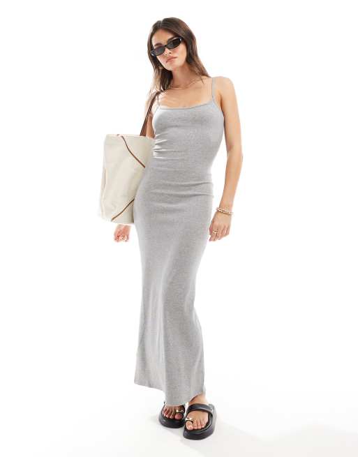 Mango - Robe à bretelles mi-longue en jersey - Gris