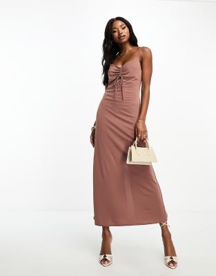 Mango - Robe caraco mi-longue froncée devant - Vison