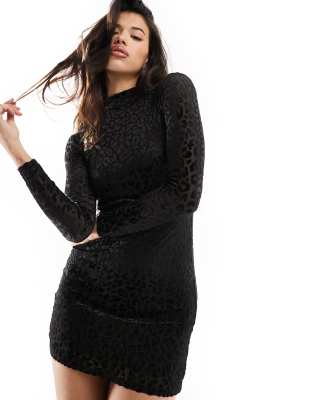 Mango - Robe courte en velours à motif léopard - Noir