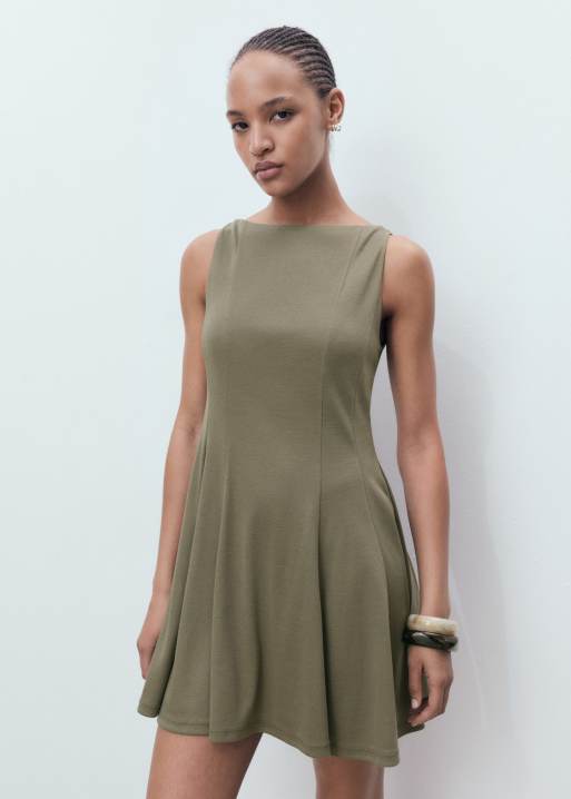 Mango - Robe courte sans manches avec détail plissé en coton mélangé - Kaki