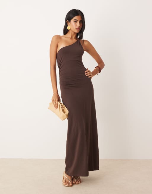 Mango - Robe longue asymétrique à bretelle torsadée - Marron chocolat