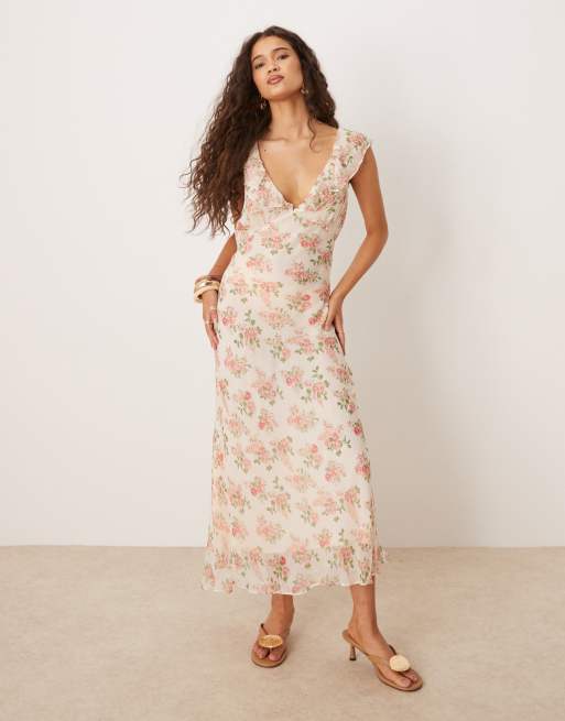 Mango - Robe longueur mollet à volants et col V - Imprimé fleurs