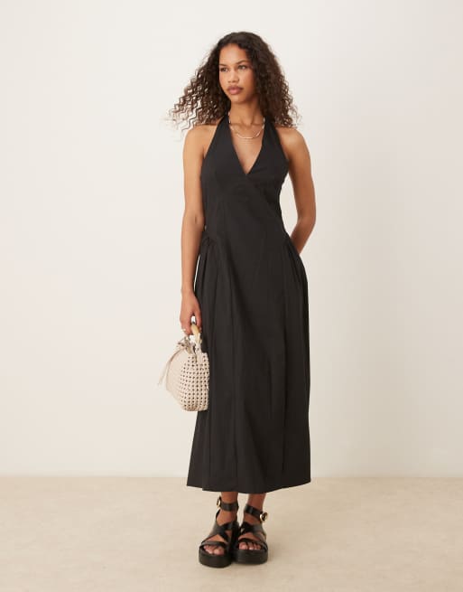 Mango - Robe longueur mollet dos nu en coton à taille basse et corsage structuré - Noir