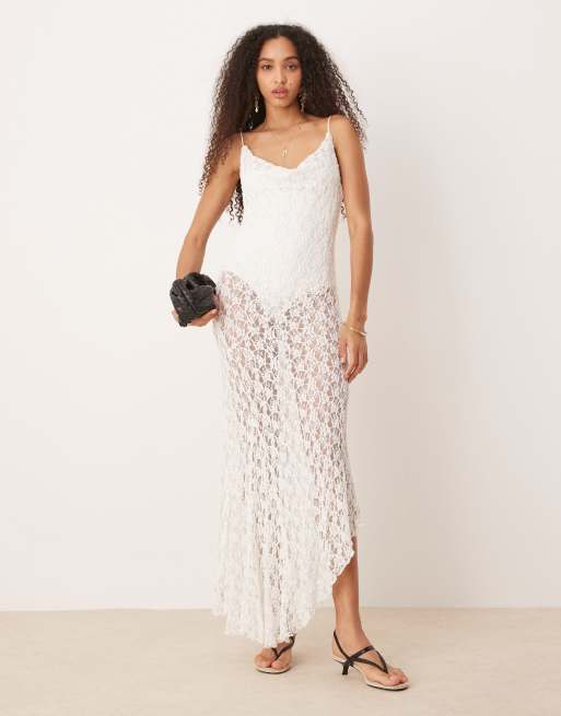 Mango - Robe nuisette mi-longue en dentelle avec body amovible - Blanc