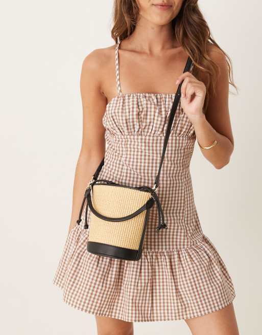 Mango - Sac bandoulière à doublure tissée avec cordon - Fauve