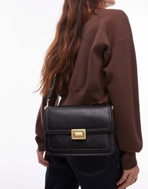 Mango - Sac bandoulière à fermoir doré - Noir