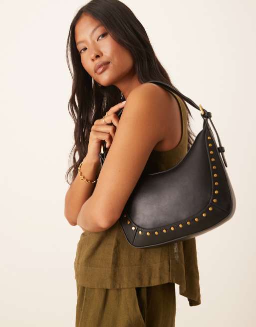 Mango - Sac porté épaule à clous dorés - Noir