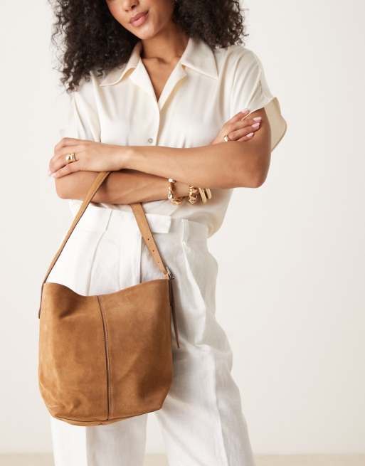 Mango - Sac porté épaule en daim à bandoulière réglable - Toffee