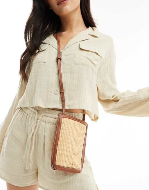 Mango - Sacoche en raphia pour téléphone - Naturel