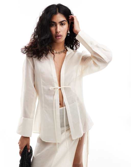 Mango - Selection - Chemise d'ensemble transparente avec lien noué à l'avant - Naturel