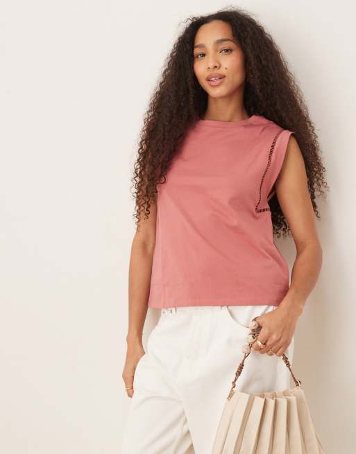 Mango - T-shirt ample avec bordures à découpes - Rose corail
