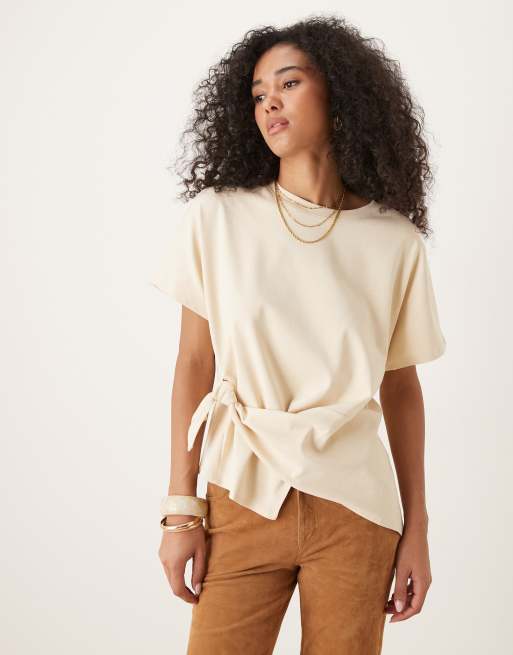 Mango - T-shirt côtelé avec liens noués à la taille - Jaune