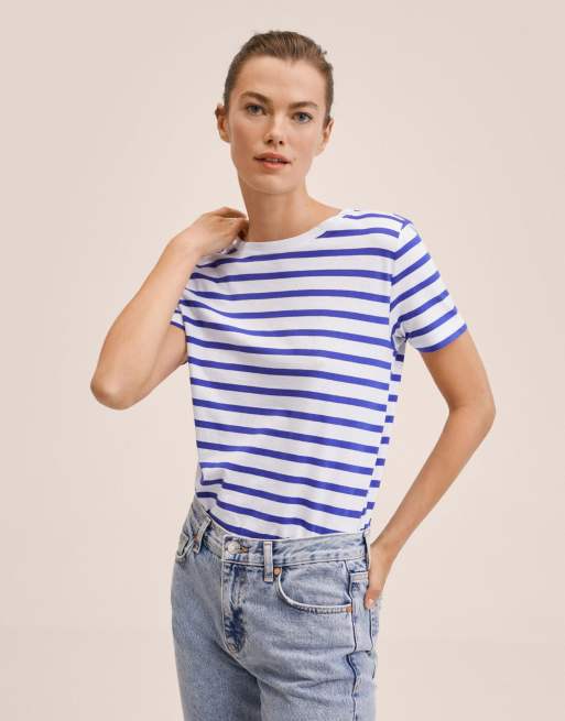 Mango - T-shirt coupe carrée à rayures - Bleu vif