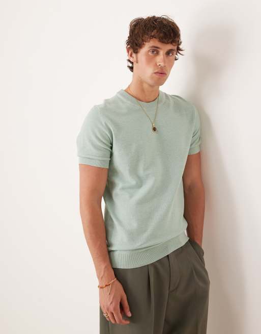 Mango - T-shirt en fine maille de coton mélangé - Turquoise