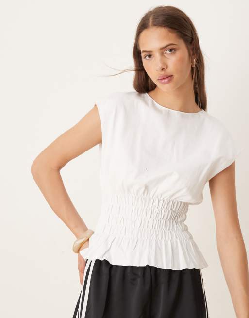 Mango - T-shirt froncé à mancherons - Blanc
