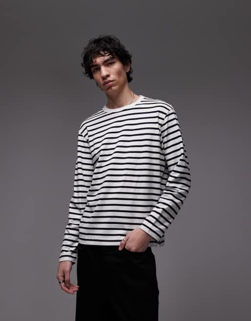 Mango - T-shirt rayé à manches longues - Bleu marine