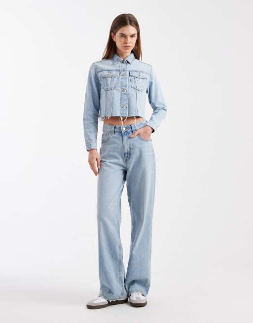Mango - Teen - Veste courte en denim de coton - Bleu clair
