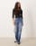 Mango - Top à col V avec épaules dénudées et manches longues - Noir
