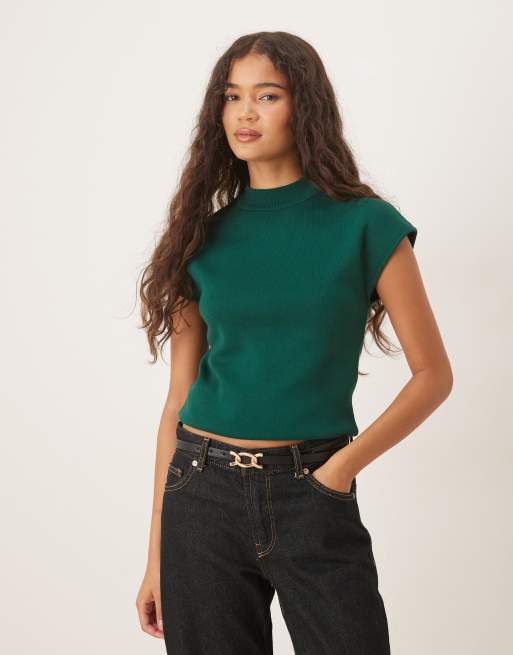 Mango - Top en maille à mancherons et col montant - Vert