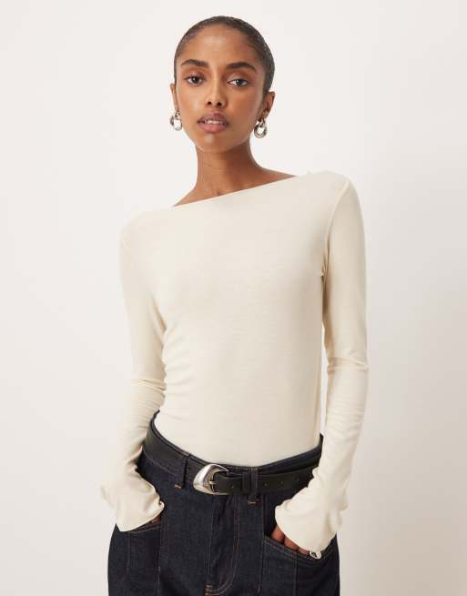 Mango - Top manches longues à encolure bateau - Jaune beurre