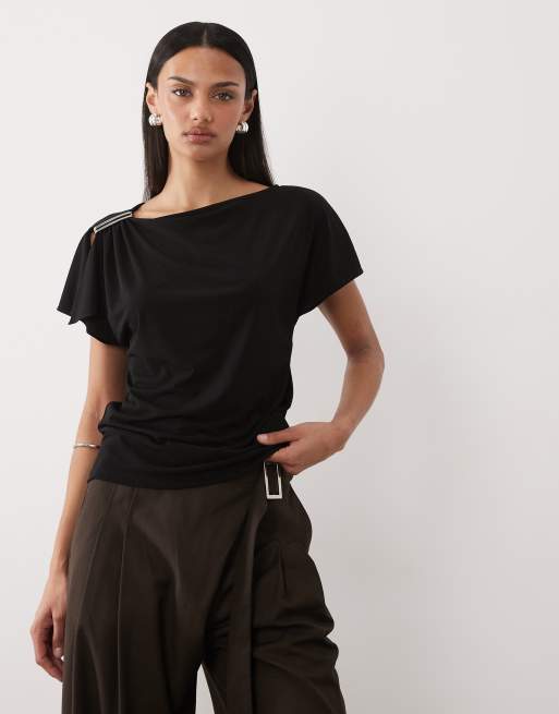 Mango - Top sans manches à encolure bateau et détail métallique sur l'épaule - Noir