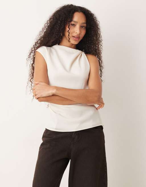 Mango - Top sans manches asymétrique avec détail métallique - Crème