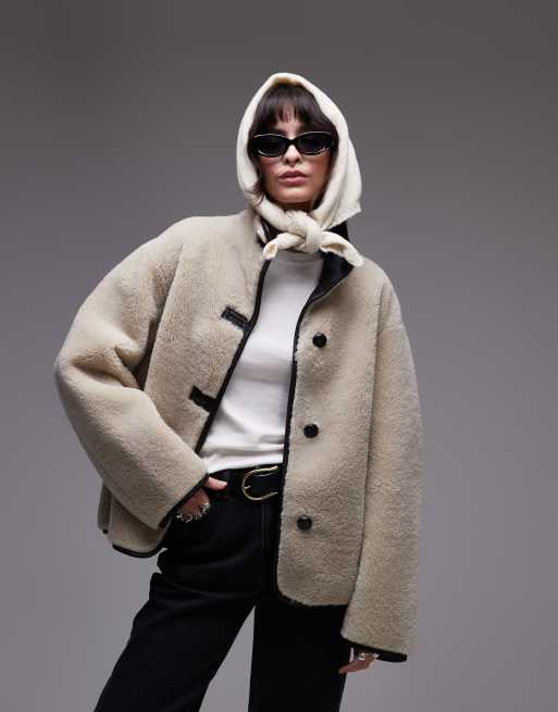 Mango - Veste en imitation peau de mouton à col cheminée - Beige