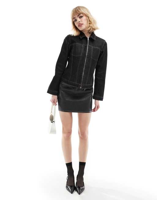 Mango - Veste en jean zippée - Bleu foncé
