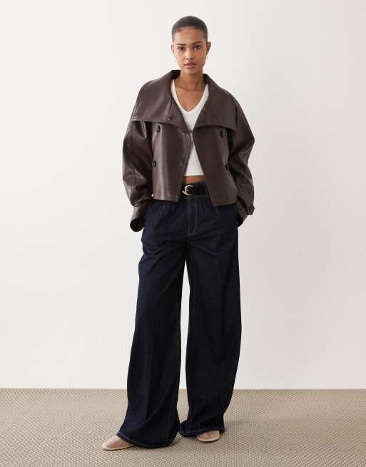 Mango - Veste en similicuir à col cheminée et liens à la taille - Figue