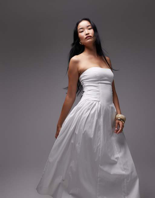 Mango x Kaia Gerber - Robe bandeau longue en coton avec buste froncé - Blanc