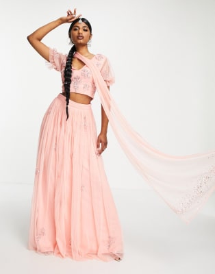 Maya - Foulard lehenga avec petites fleurs ornementées - Blush