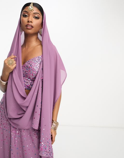 Maya - Lehenga - Dupatta d'ensemble à sequins en 3D - Lilas