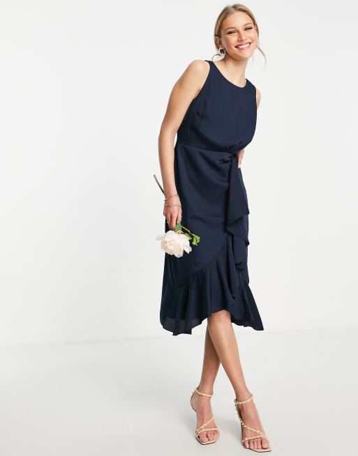 Maya - Robe portefeuille de demoiselle d'honneur à volants - Bleu marine