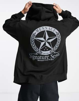 Mennace - Sweat à capuche d'ensemble oversize zippé avec imprimé Signature Series - Noir délavé