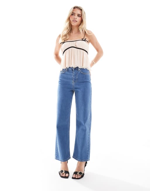 Miss Selfridge Petite - Jean droit avec poches en forme de cœur - Bleu clair délavé